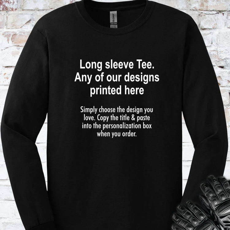 Choose any of our designs to have printed onto this long sleeve T shirt. Simply put the title of the design in the personalisation box when ordering.